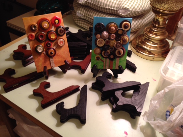 My sister Pat and I have been using her vintage antique buttons to make canvas button flower bouquets.